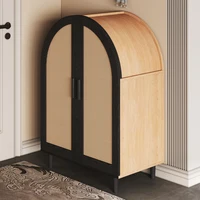 Круглый сервант из ротанга — шкаф для обуви с 3 полками и плетеной дверью, изогнутое хранилище для прихожей и гостиной