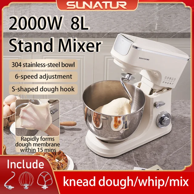 Электрический кухонный блендер SUNATUR, 2000 Вт, 8 л, миксер для взбивания яиц, крем, универсальный миксер, бытовой автоматический тестомес