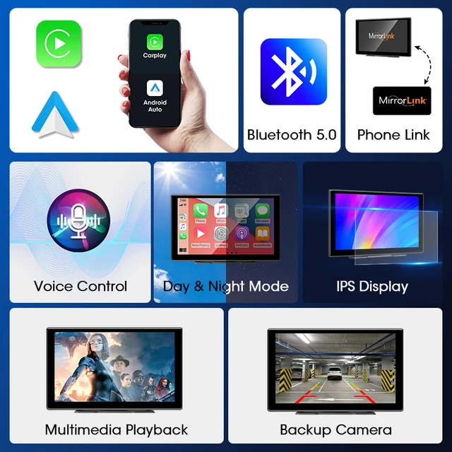 Srnubi Универсальный 7 «10» автомобильный беспроводной Carplay и Android автоматическая навигация заднего вида FM AUX портативный мультимедийный сенсорный экран