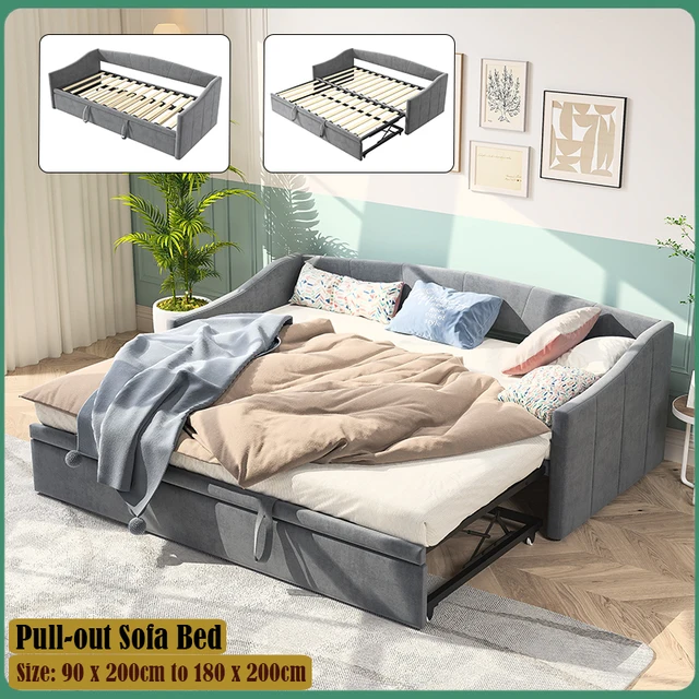 Выдвижной диван-кровать Anajqaqia, серая бархатная ткань, многофункциональная кровать 90/180 х 200 см, с решетчатым каркасом