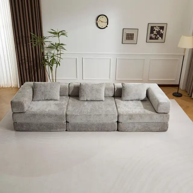 Компрессионный диван-кровать 3-в-1, серый диван из синели, двухместный диван, складной шезлонг с подушками, диван-диван для гостиной, гостя