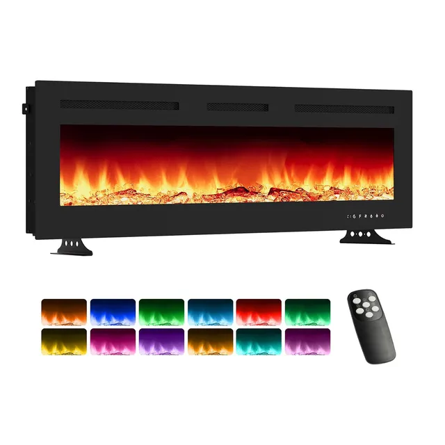 50-дюймовый электрический камин 3D, встраиваемая и настенная печь с 12 цветными светодиодными режимами пламени, 220 В, 900/1800 Вт, двойной мощный нагрев