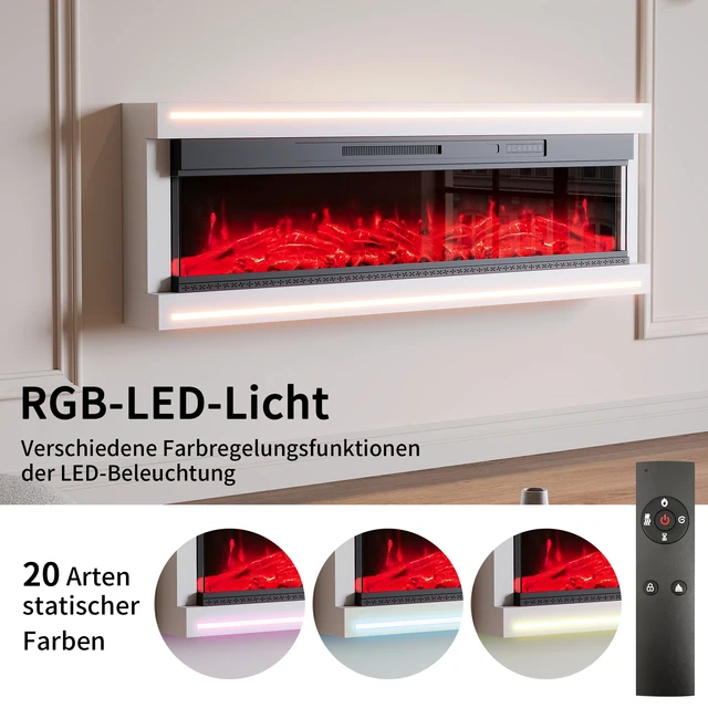 Anajqaqia 51,3×17×161/136,8 см Электрические камины Встроенное светодиодное освещение, таймер и защита от перегрева, функция нагрева, белый