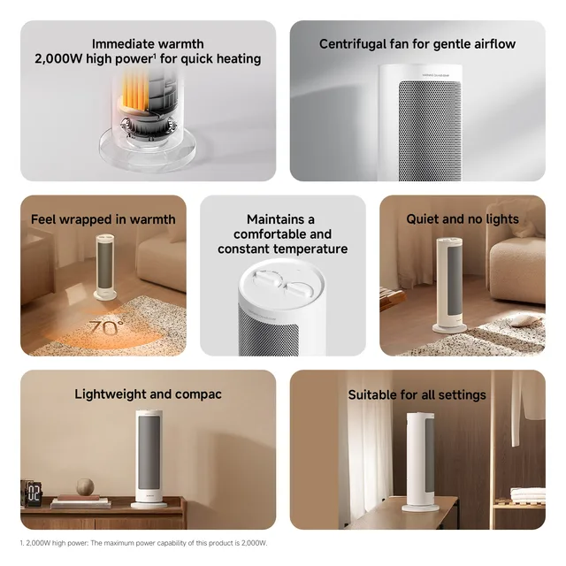 XIAOMI Тепловентилятор Компактный домашний стоячий быстронагревающийся осциллирующий электрический тепловентилятор с термостатическим управлением
