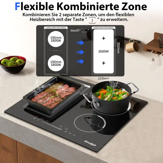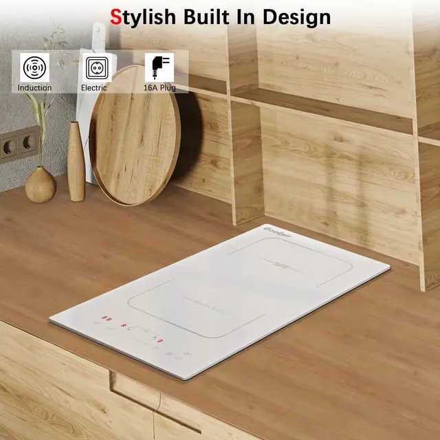 Индукционная табличка 4 Feux Blanc avec Prise, Cooksir Plaque de Cuisson Induction Encastrable, 60 см, 3500 Вт, мини-изображение, 230 В