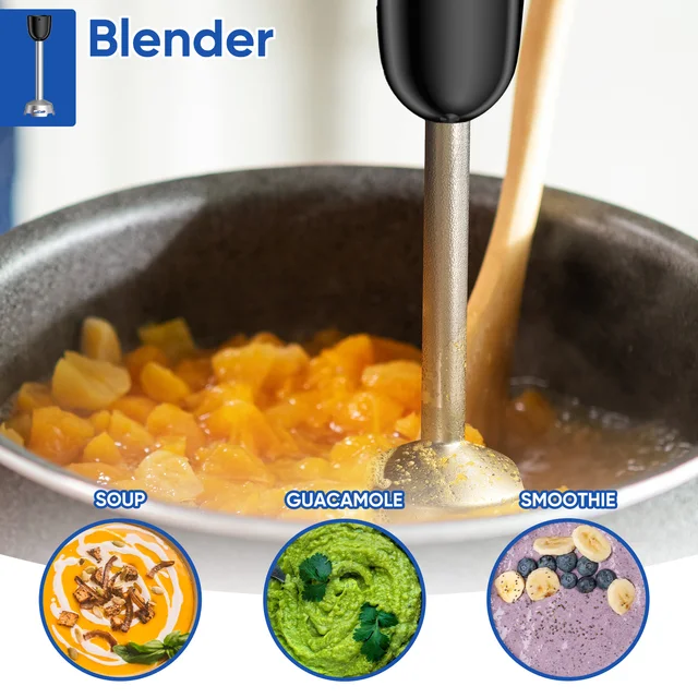 Погружной ручной блендер BioloMix 3-в-1, 1000 Вт с лезвием из нержавеющей стали 304 для смузи, пюре, детский кухонный комбайн