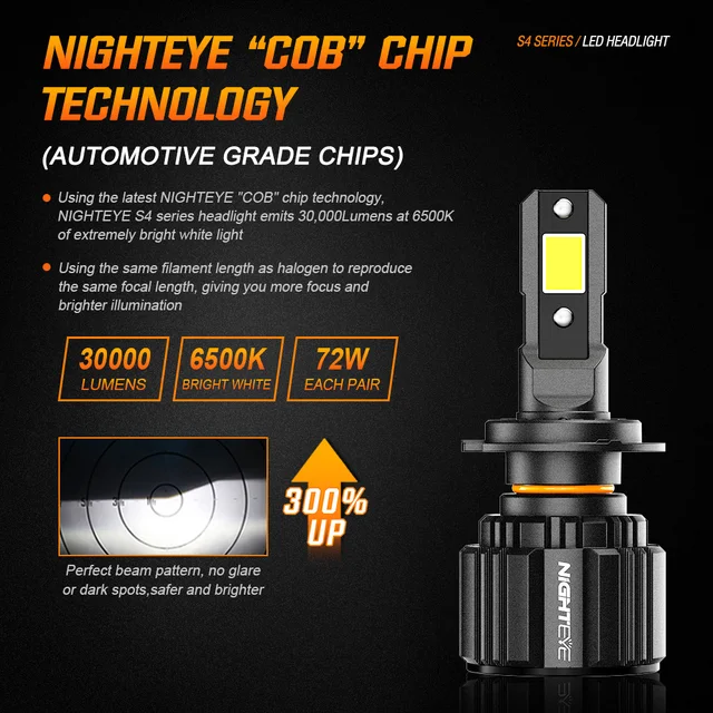 NIGHTEYE H7 Светодиодные автомобильные фары Canbus 30000LM H4 HB3 9005 HB4 9006 H11 H8 H9 9012 Светодиодные фонари 6500K Белый 72 Вт Автомобильная лампа