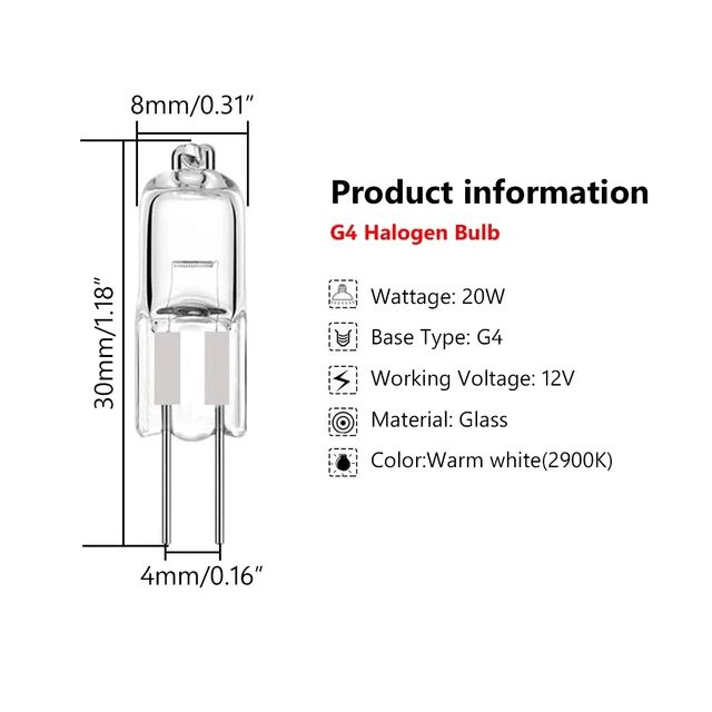 5/10/20 шт. мини G4 энергосберегающая вольфрамовая галогенная лампа типа JC DC12V 20 Вт G4 прожектор хрустальная люстра галогенная лампа