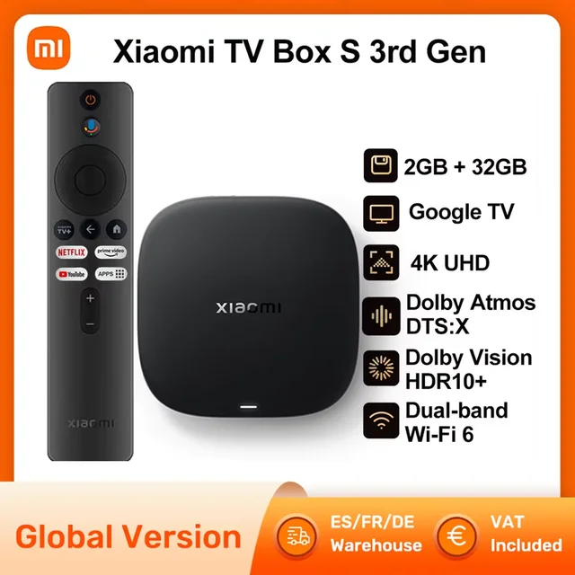 Xiaomi Mi TV Box S 3-го поколения, глобальная версия, 2 ГБ ОЗУ, 32 ГБ ПЗУ, 4K UHD Dolby Vision HDR10+ Google TV WIFI 6 BT5.2, Google Assistant