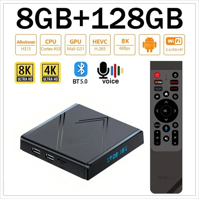 TV98 Pro TV Box Android 14 Allwinner H313 Четырехъядерный медиаплеер 8K 4K HD 4G 5G Dual WIFI BT5.0 8 ГБ 128 ГБ Голосовой пульт дистанционного управления iptv