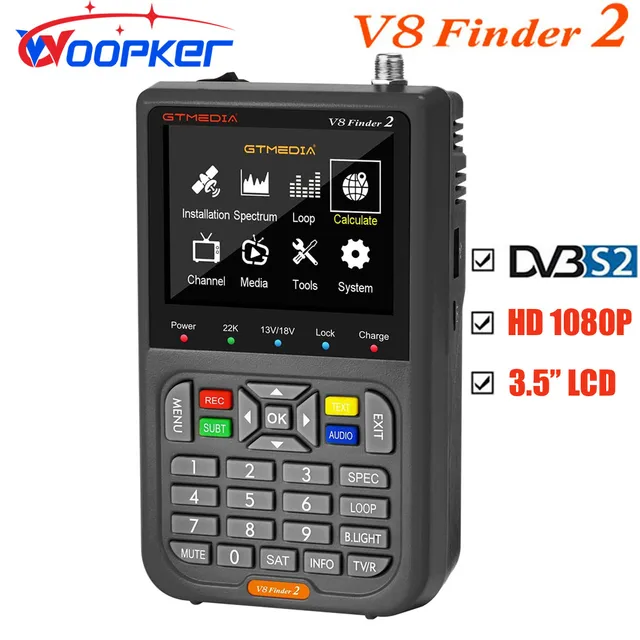 Woopker V8 Finder2 Satellite Finder Цифровой FTA DVB-S/S2/S2X Детектор сигналов Приемник ЖК-экран для регулировки Sat TV Dish