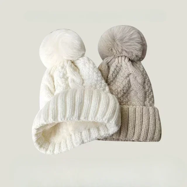 Зимние женские вязаные шапки с помпоном, теплая женская шапка-бини из искусственного меха, шапка для девочек-подростков, шапка с помпонами, рождественская шапка
