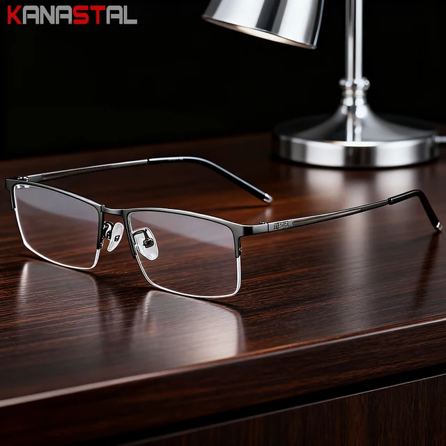 Мужские титановые полуочки в оправе, очки с блокировкой синего света, женские очки против усталости, компьютерные очки по рецепту, близорукость, очки для чтения