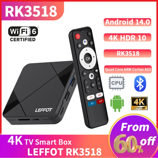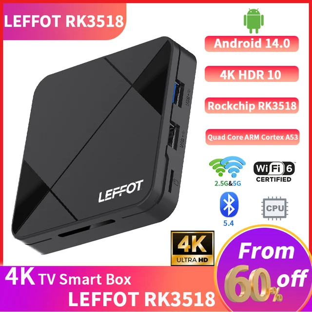 Новый стиль LEFFOT RK3518 Android 14.0 TV Box BT5.0 Wifi6 A53 Поддержка Youtube Медиаплеер 4K Google Voice Assistant 4K Smart Box