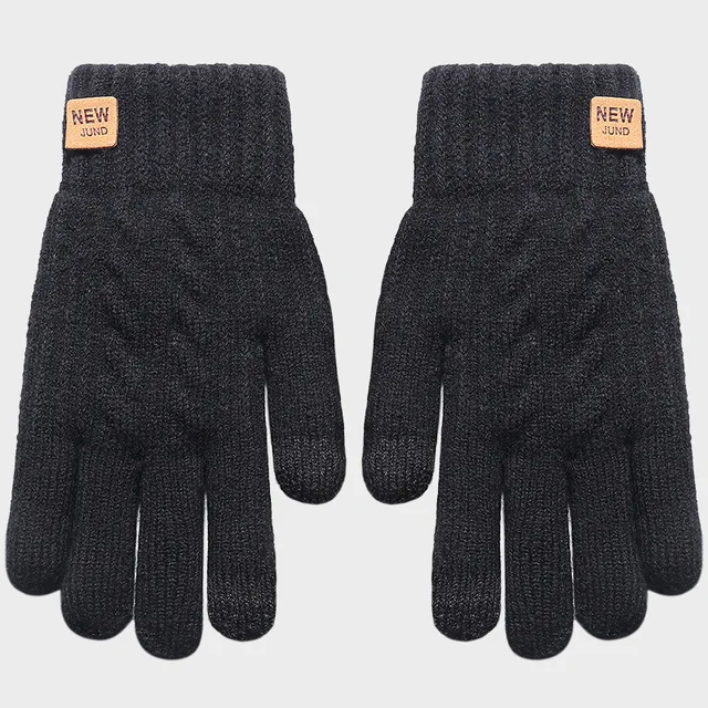 Оптовые модные теплые черные вязаные зимние перчатки с сенсорным экраном на флисовой подкладке
