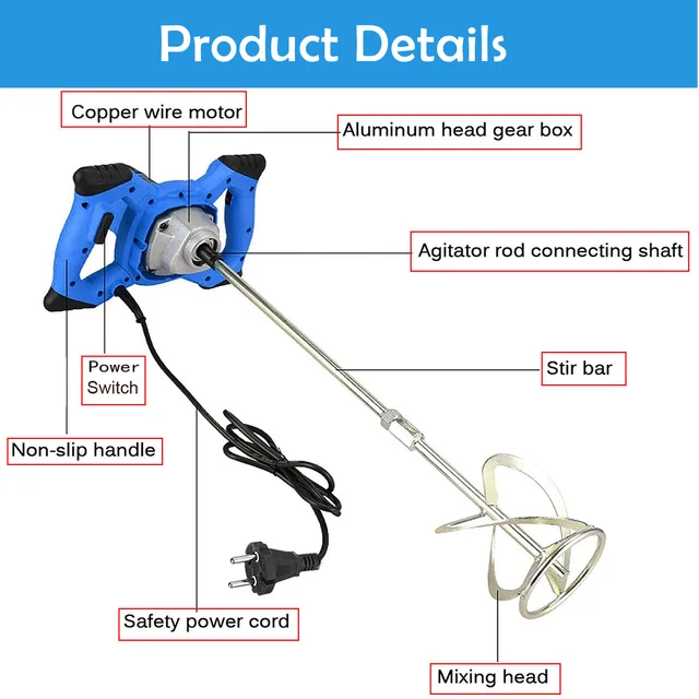 Портативный лопастной миксер 2600 Вт, 6 скоростей, электрическая мешалка, дрель, инструмент для перемешивания растворов, краски, цемента, штукатурки