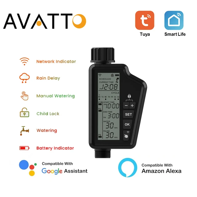 MIUCDA Tuya WIFI Интеллектуальный таймер для полива сада с большим дисплеем LCD для домашней и наружной орошения,полностью настраиваемая программа,совместим с Alexa и Google Home