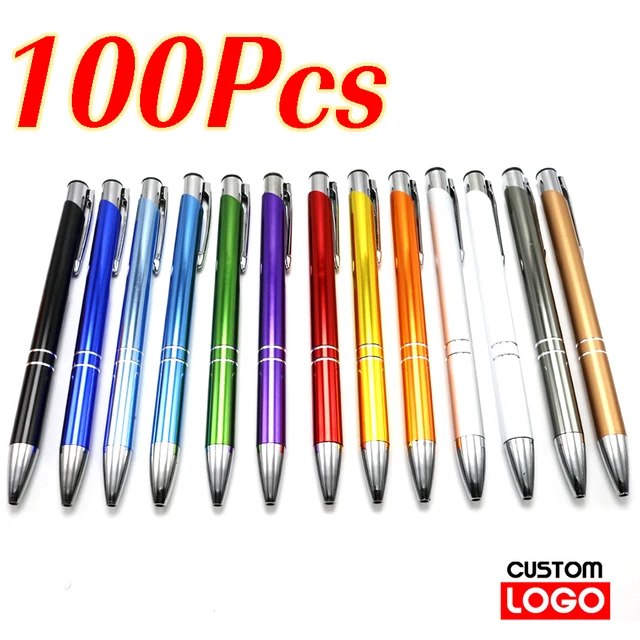 100 шт./лот персонализированная шариковая ручка с поддержкой печати логотипа металлическая шариковая ручка оптовая продажа рекламная ручка школьный подарок офисные принадлежности