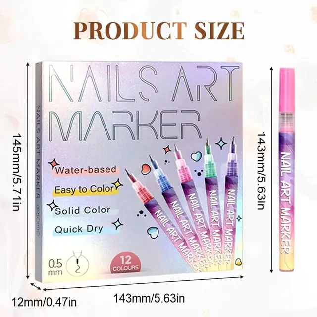 12-цветный набор ручек для дизайна ногтей, 3D ручка для дизайна ногтей, водостойкие быстросохнущие лакированные ручки для самостоятельного рисования ногтей, рисования точечной подводки