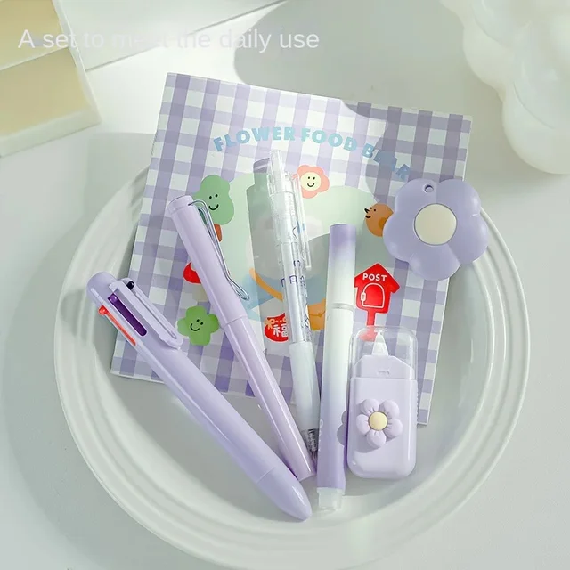7 шт./компл., милый канцелярский набор кремового цвета для школы, рождественский студенческий подарок, кавайные письменные принадлежности с аксессуарами для ручек для ноутбука