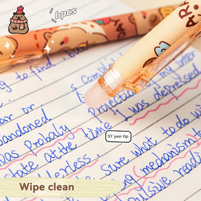 Стираемые ручки Capybara, 6 шт., многоразовая гелевая ручка с чернилами, без размазывания, школьные принадлежности с милыми животными для студентов, офисные канцелярские принадлежности, подарки