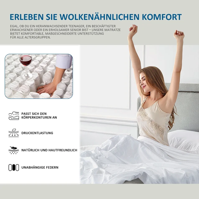Матрасы Anajqaqia 90-180×200 см, матрас с карманными пружинами, толщина H3, 20 см, уплотнение Oeko TEX, с чехлом из лиоцелла, 7-зонный матрас