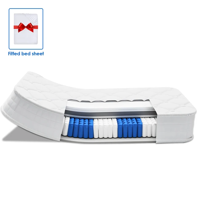 Пружинный матрас AUTHMIC с карманными пружинами, 7 зон, эргономичная поддержка, средней жесткости, толщиной 22 см, с приталенным простынем для дома, спальни, комфорта сна