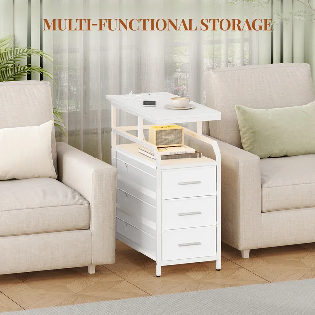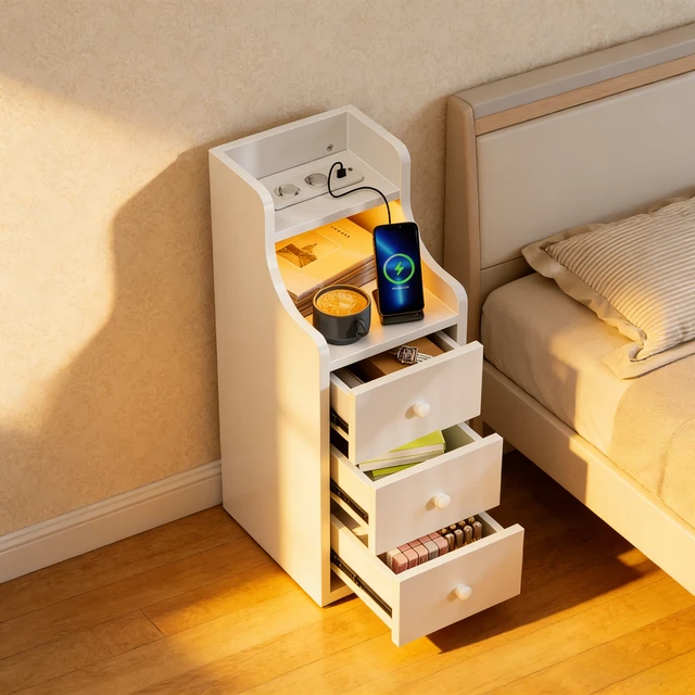 Приставной столик с удлинителем, прикроватная тумбочка со светодиодной подсветкой, тумбочка с 3 ящиками, 2 розетками переменного тока и 2 портами USB