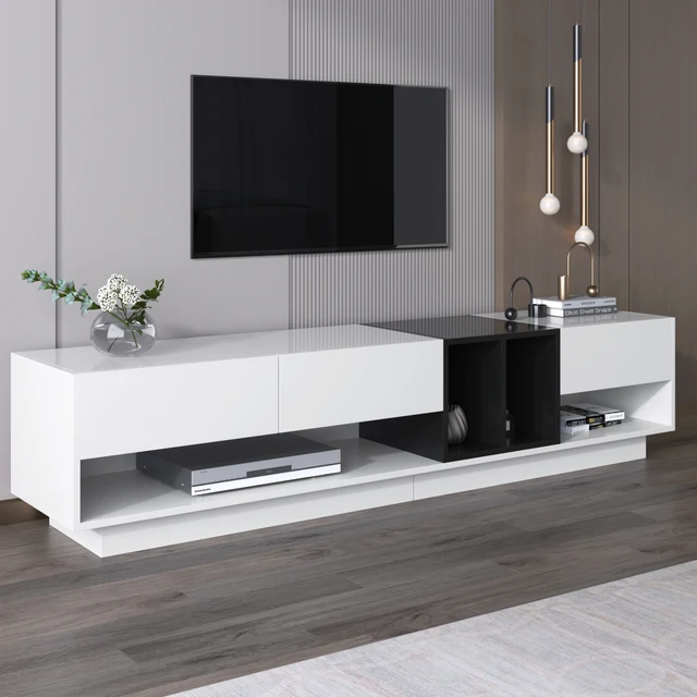 Comanlai 200-сантиметровый светодиодный шкаф для телевизора, тумба для телевизора с глянцевым покрытием, стеклянные полки, низкая доска для телевизора, для гостиной, спальни
