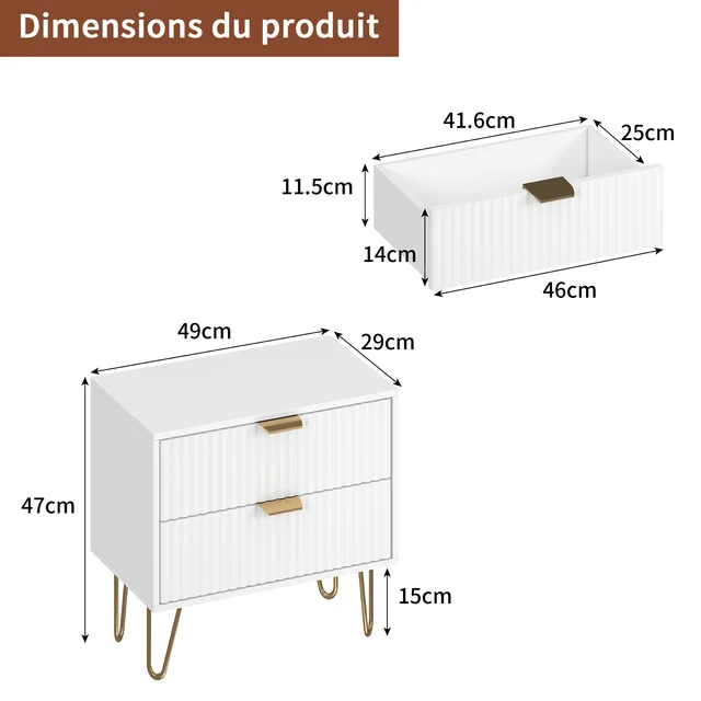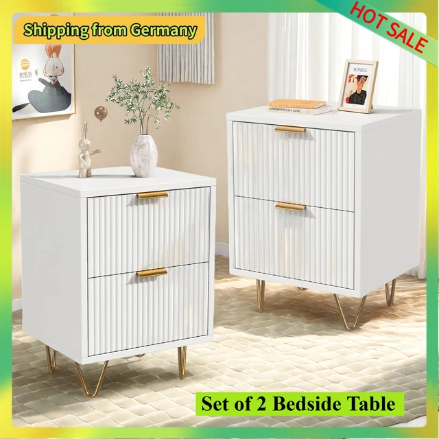 Comanlai 2 шт. Прикроватная тумбочка с 2 ящиками, тумбочка с металлическими ножками, комод для гостиной, 49x29x47 см