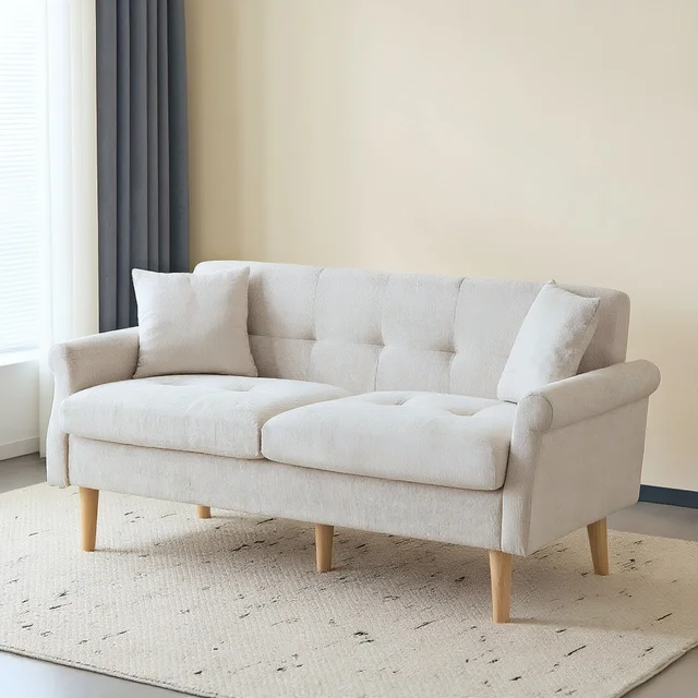 KOMHTOM Диван 2-местный, 2-местный диван с 2 подушками, небольшой тканевый диван, кухонный диван с подлокотником, мини-диван с мягкой подкладкой
