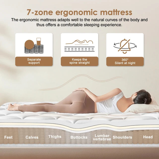 KOMHTOM Ортопедический матрас из холодной пены с 7-зонным пружинным сердечником, твердость H3 (средний твердый), высота 20 см.