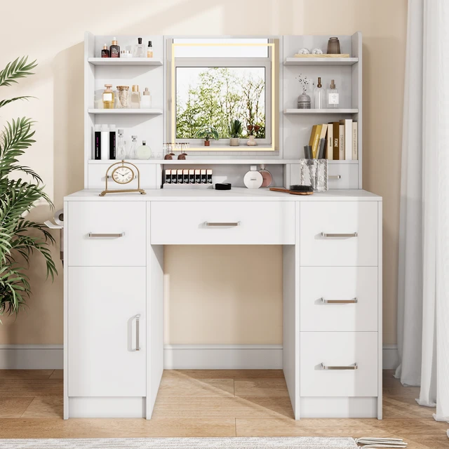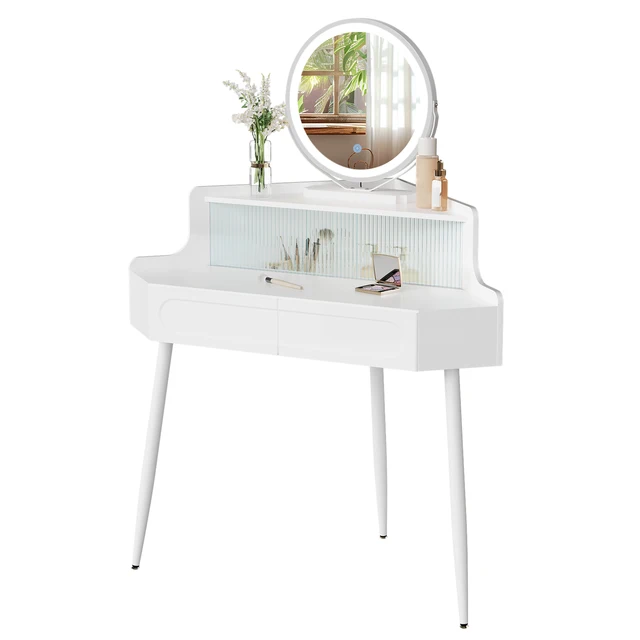 WOLTU Белый комод, угловой туалетный столик с зеркальным освещением, регулируемая яркость, косметический столик для макияжа для спальни