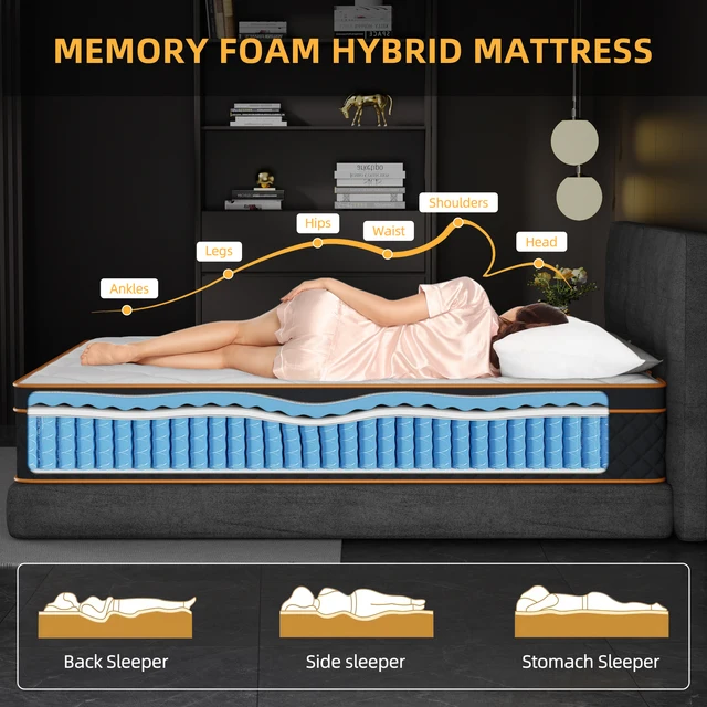 SKSBTF карманный пружинный матрас толщиной 25 см, матрасы из пены с эффектом памяти, гибридные дышащие бесшумные коврики для сна для взрослых