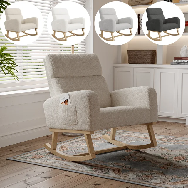 Кресло-качалка Anajqaqia, кресло для отдыха, кресло для гостиной с двумя карманами, кресло-качалка для спальни и балкона, Teddy Velvet