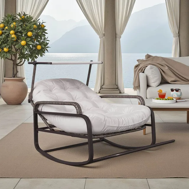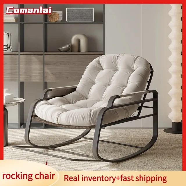 Кресло-качалка Comanlai, кресло-качалка, кресло-качалка для внутреннего и наружного использования, с мягкой подушкой и металлическим каркасом