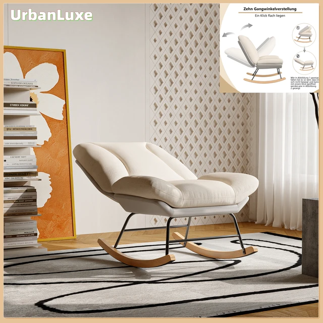 Кресло-качалка Urban Luxe Кресло для отдыха 5-сторонняя регулируемая спинка Стул для гостиной Белый льняной