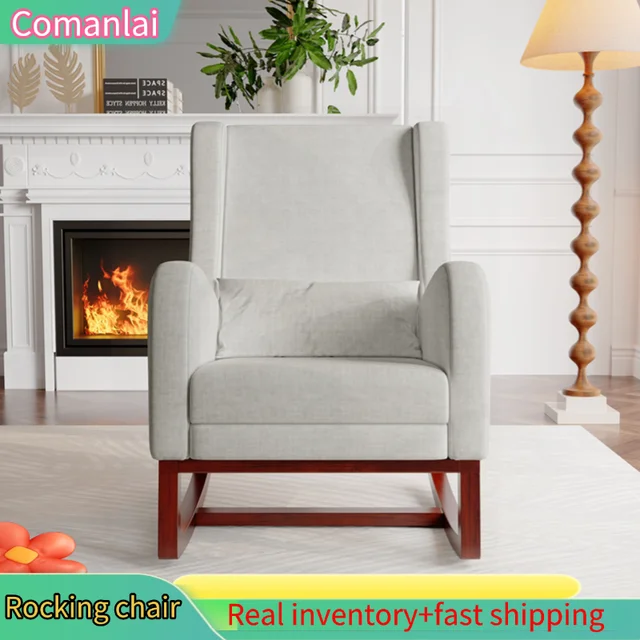 Кресло-качалка Comanlai — эргономичное кресло со спинкой из хлопка и льна, конструкция из массива дерева и металла, для гостиной/спальни