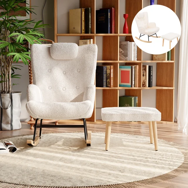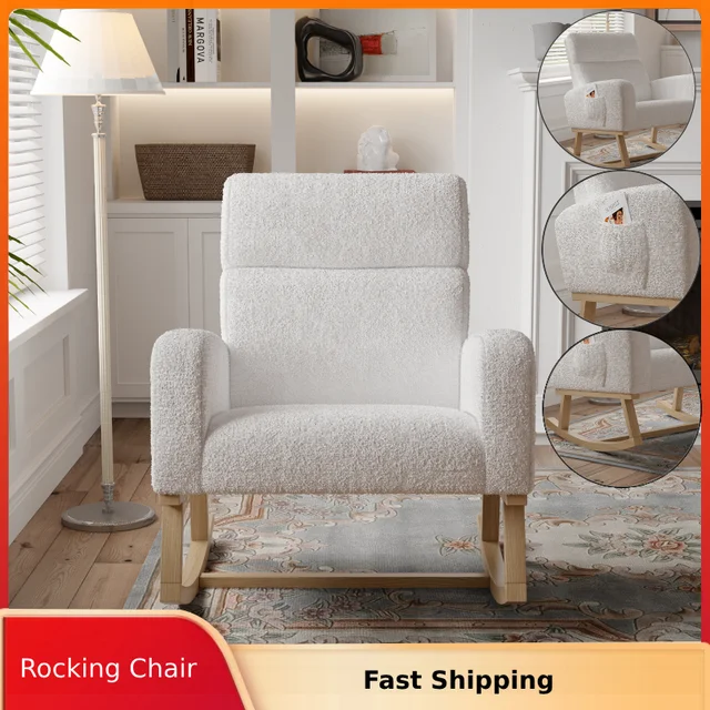 Кресло-качалка Anajqaqia, кресло-качалка с высокой спинкой для гостиной, ткань Тедди, белый