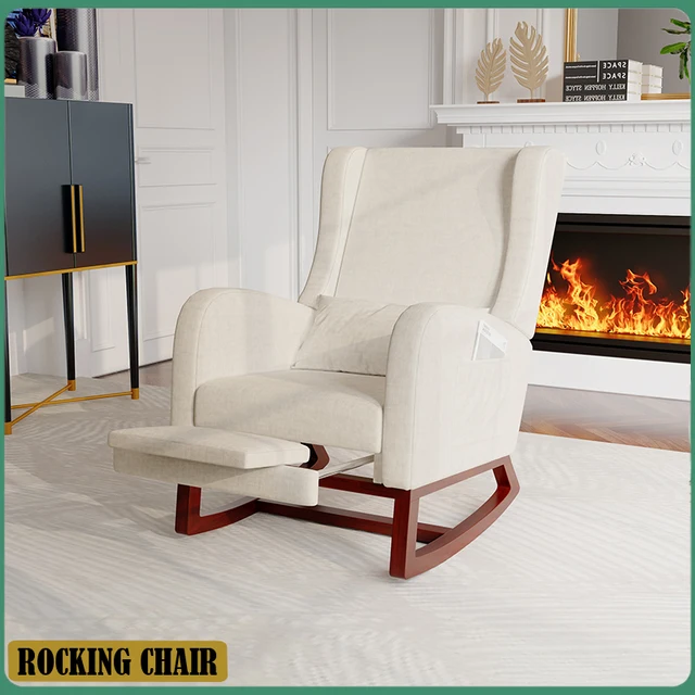 Кресло-качалка Anajqaqia — бежевое кресло-качалка с подставкой для ног и подушкой сиденья, подходит для гостиной, спальни, кабинета