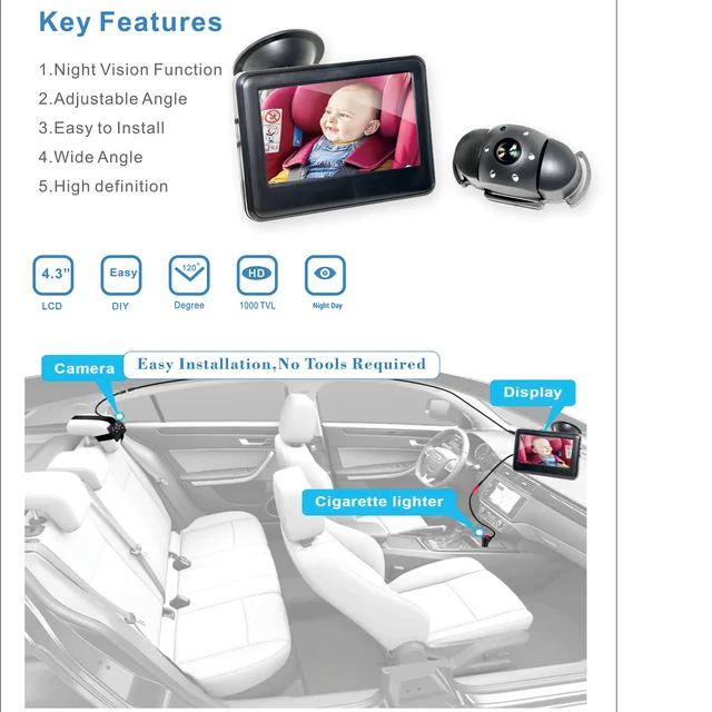 VB008 радионяня для непослушного ребенка, мальчика, девочки, детская камера наблюдения на заднем сиденье, 4,3-дюймовый дисплей, радионяня, монитор плача