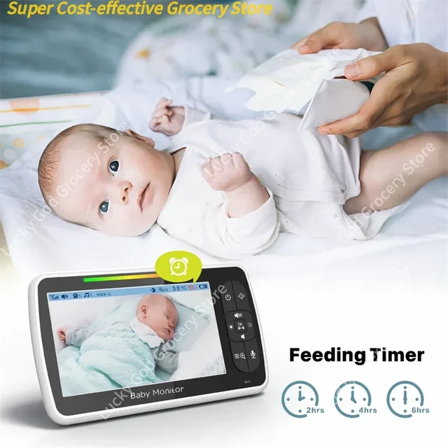Детская 5-дюймовая видеоняня с удаленной камерой с поворотом и наклоном и масштабированием и аудио. Двусторонний разговор, режим VOX, колыбельные, детский телефон