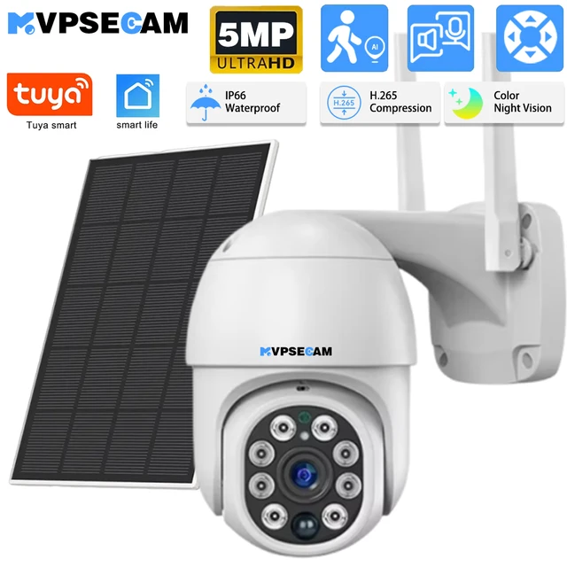 Встроенная батарея, солнечная 5-мегапиксельная уличная Wi-Fi PTZ-камера видеонаблюдения, аудио PIR-обнаружение движения, IP-камера Tuya Smartlife с питанием