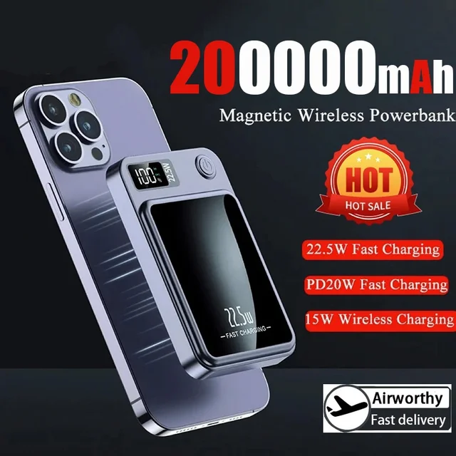 200000 мАч беспроводной магнитный внешний аккумулятор 22,5 Вт быстрая зарядка портативный внешний аккумулятор PowerBank Magsafe для iPhone Sumsang