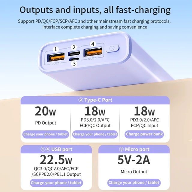 20000 мАч Power Bank Быстрая зарядка 100% достаточная емкость Портативное зарядное устройство для iPhone Xiaomi Huawei Samsung