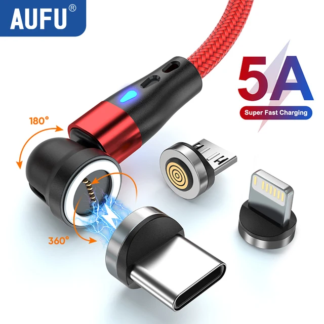 AUFU 5A Магнитный кабель типа C для Samsung S21 Huawei P30 Магнитный провод для быстрой зарядки зарядного устройства для iPhone Xiaomi Шнур для передачи данных Micro USB