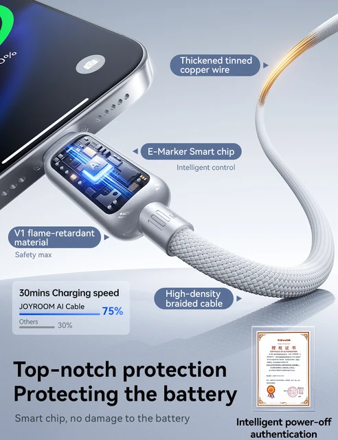 Joyroom Кабель для быстрой зарядки, 100 Вт, 1,2 м, кабель USB Type-C к Type-C с автоматическим отключением питания для IPhone, Xiaomi, Samsung, OPPO VIVO