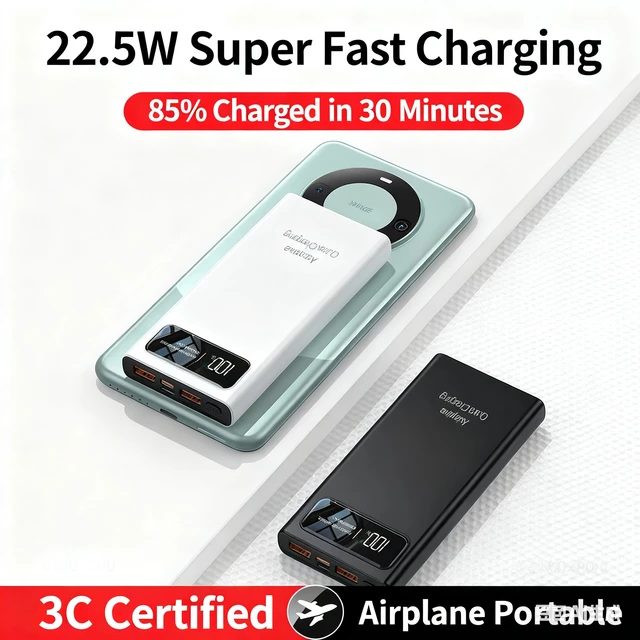 Power Bank Быстрая зарядка 100% 20000 мАч Достаточное емкость Портативное зарядное устройство для iPhone Xiaomi Huawei Samsung