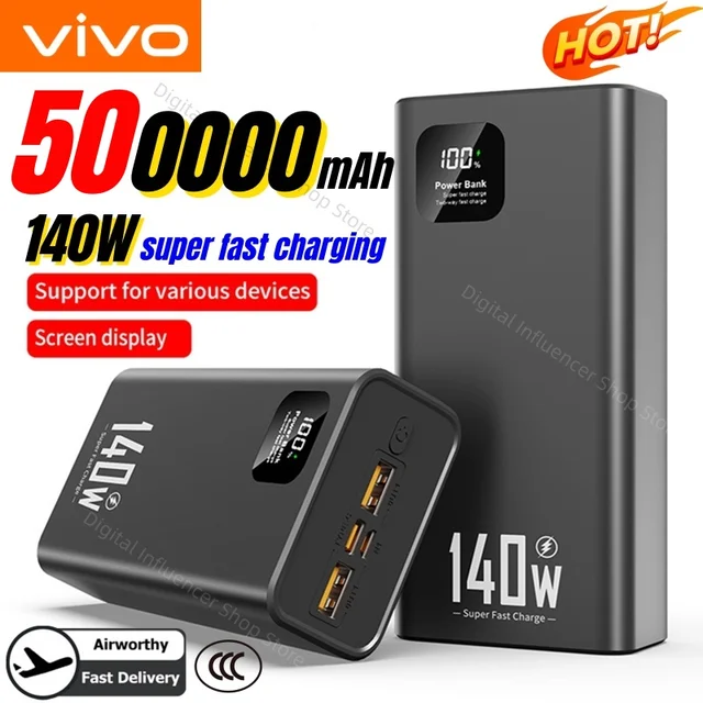 VIVO 500000 мАч Power Bank 140 Вт сверхбыстрая зарядка Powerbank портативное внешнее зарядное устройство для iPhone Huawei Samsung Xiaomi