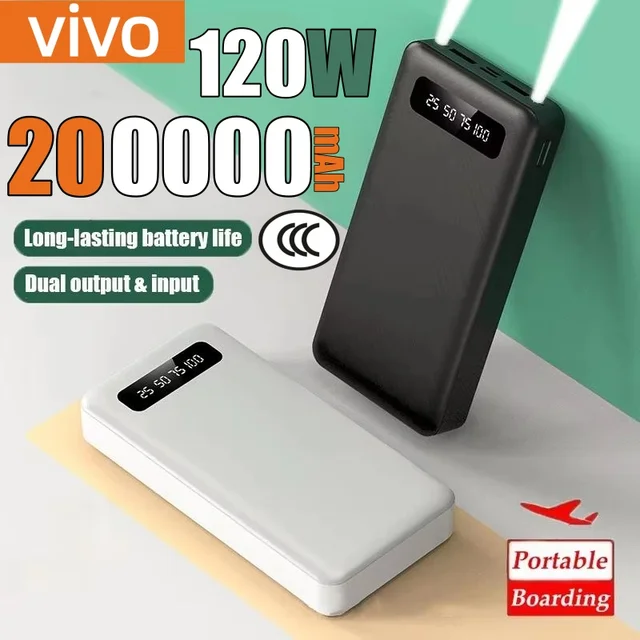 VIVO 500000 мАч Power Bank 120 Вт Высокая емкость Сверхбыстрая зарядка аккумулятора с цифровым дисплеем Powerbank для iPhone Huawei Samsung